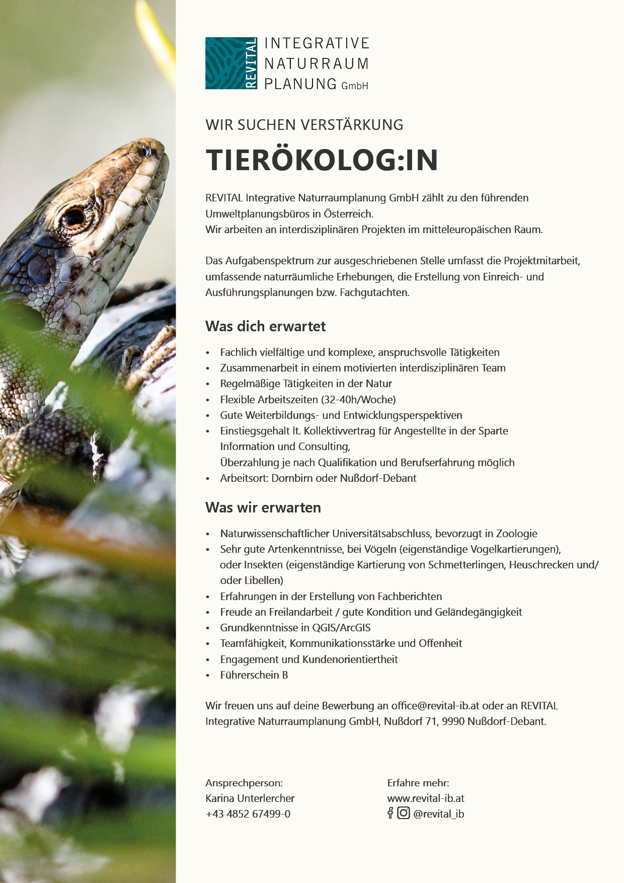 Bitte senden Sie uns Ihre vollständigen Bewerbungsunterlagen an office@revital-ib.at